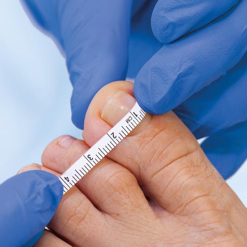 Für die Auswahl der richtigen Spangengröße ist es wichtig, den Nagel vorher auszumessen. Das dazu benötigte Maßband wird bei der neuen Naspan®- Platinium automatisch mitgeliefert. Ein Abdruck des Nagels ist hierbei nicht nötig.